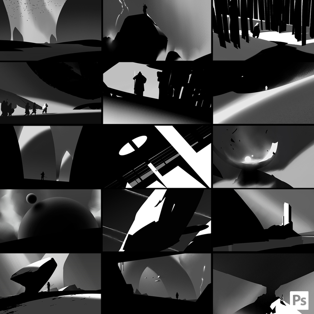 This is a short list of my core graphic compositional brushes, they help me stay focused and avoid detailing. Meant for quick sketches and graphic reads.